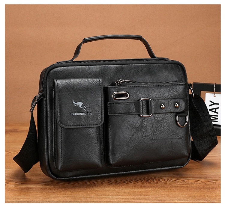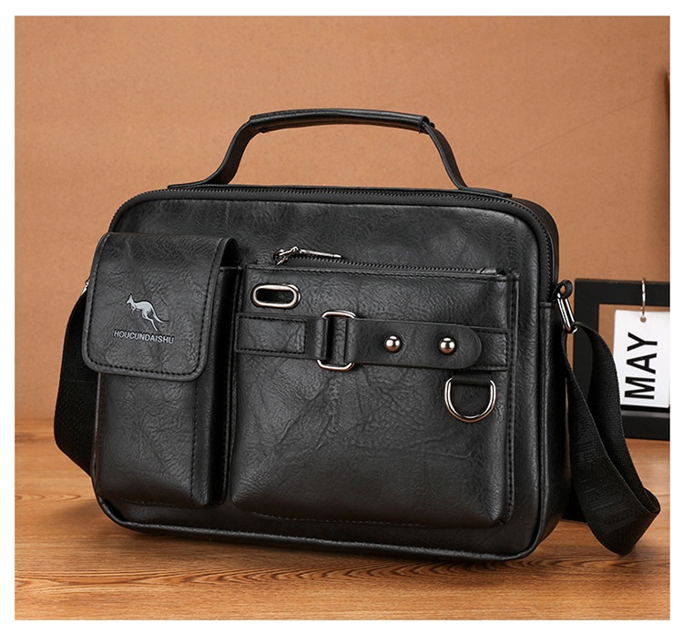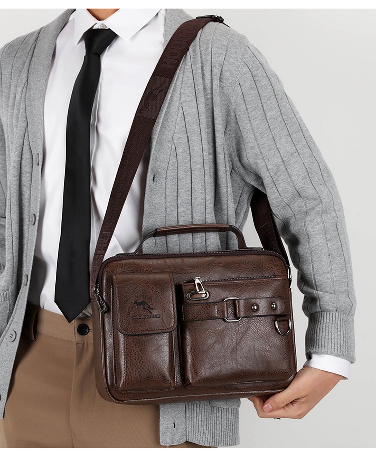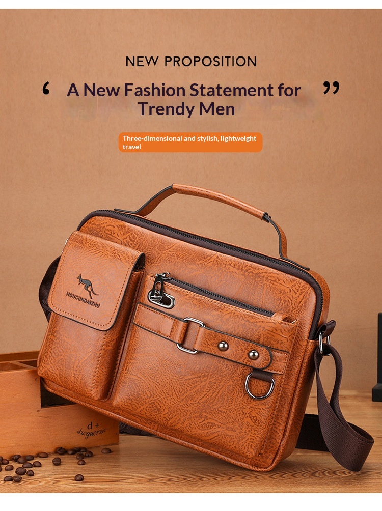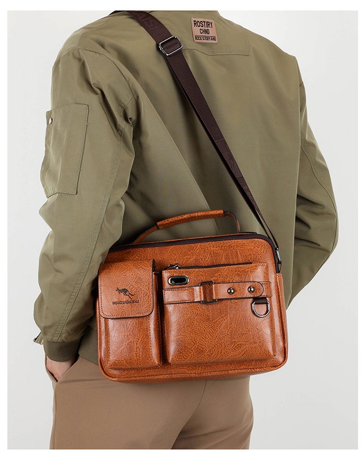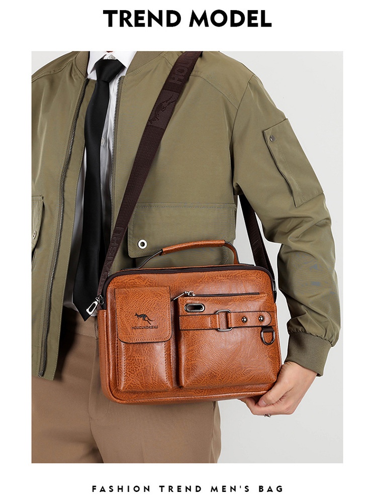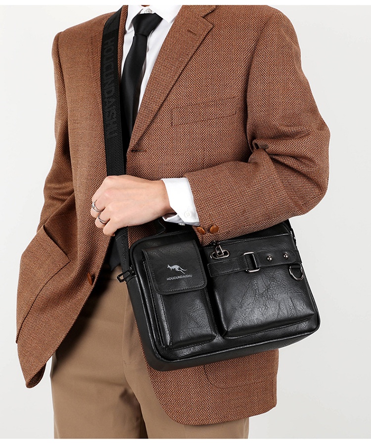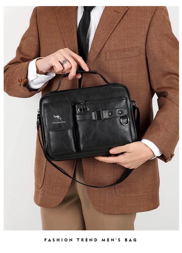 Men's Large Capacity PU Shoulder Bag Retro Business Style