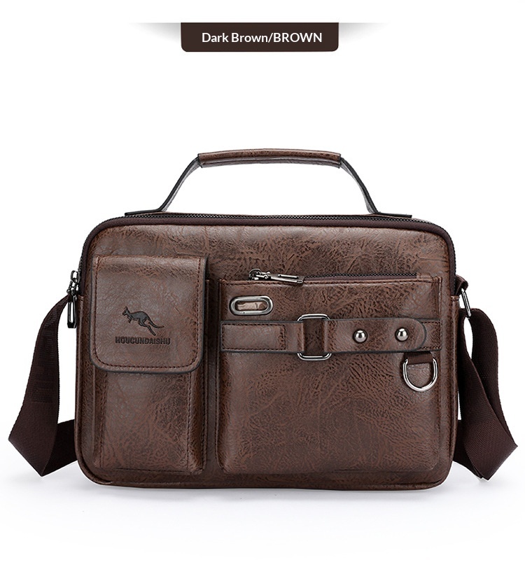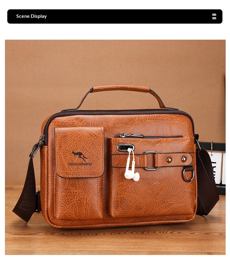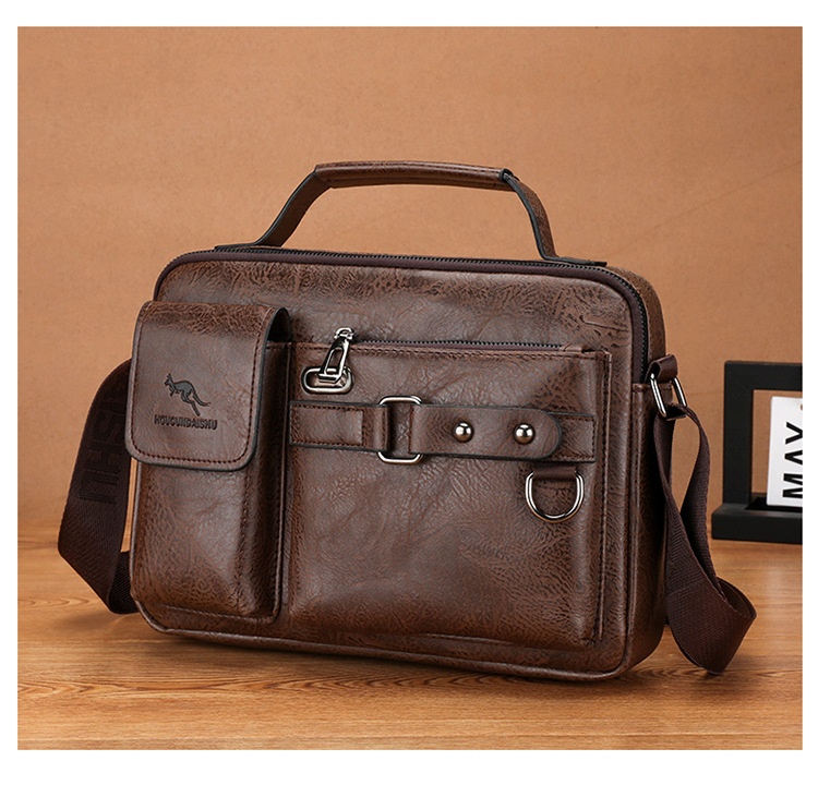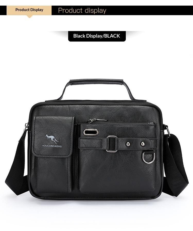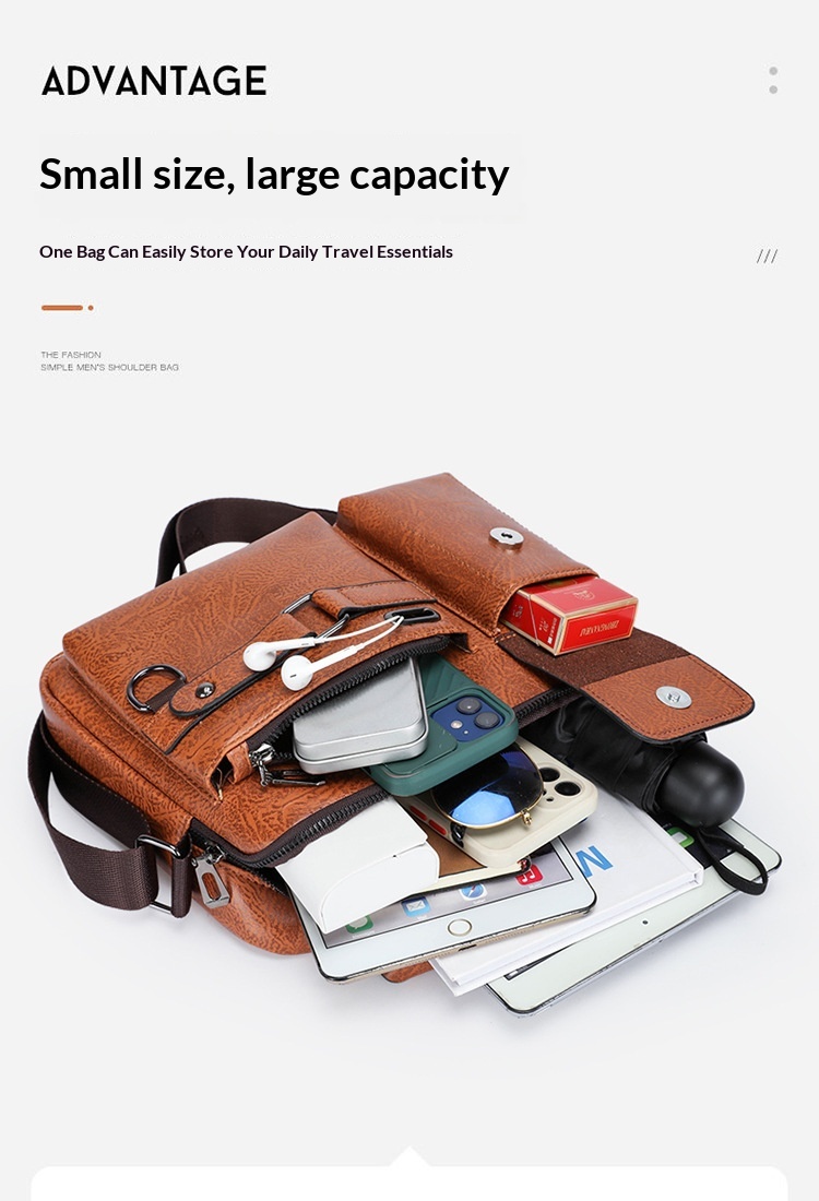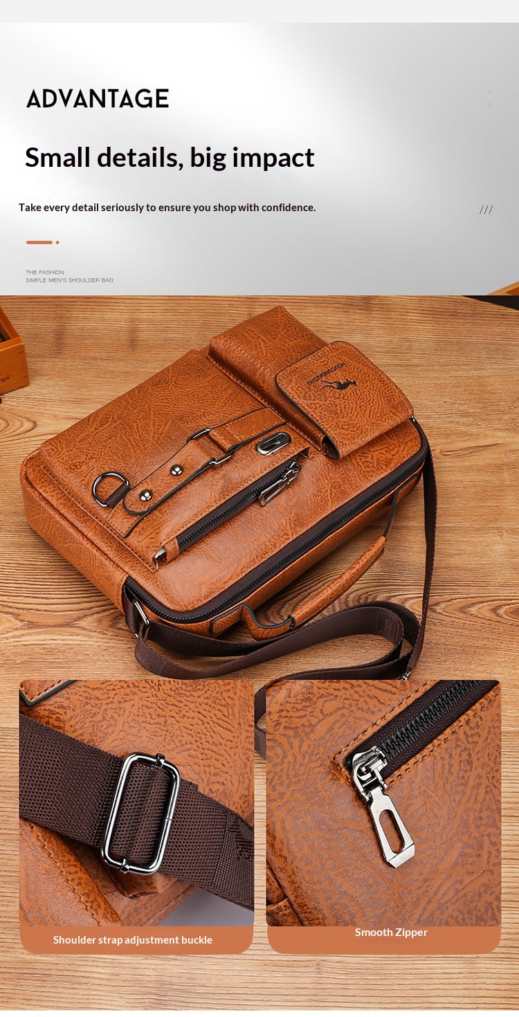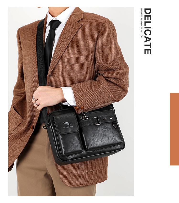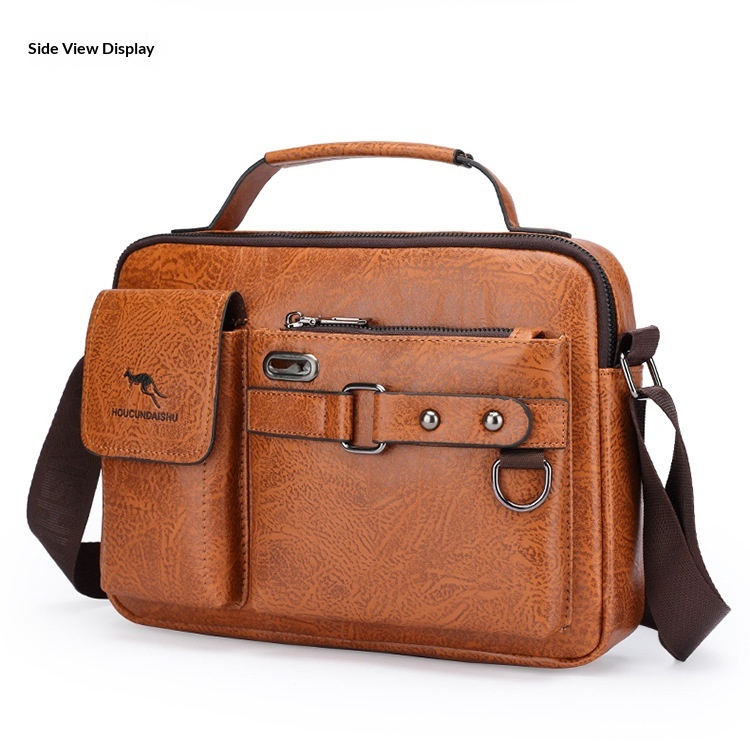 Men's Large Capacity PU Shoulder Bag Retro Business Style