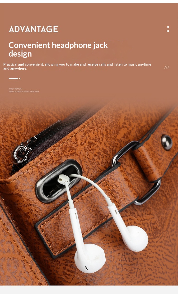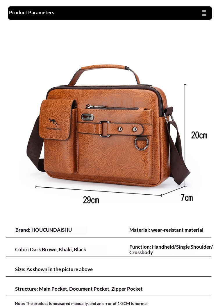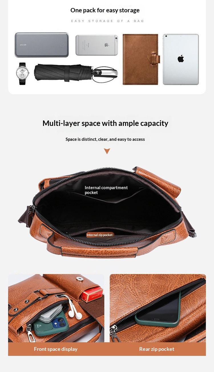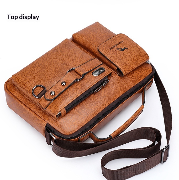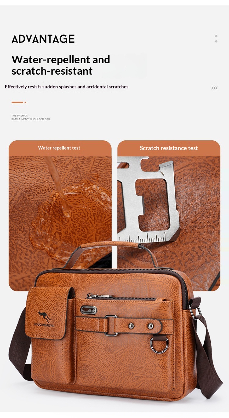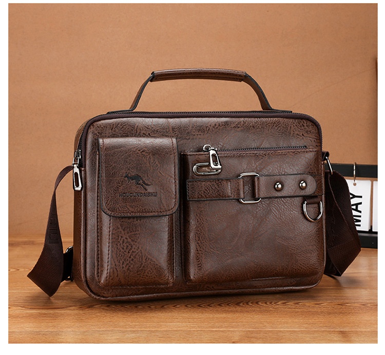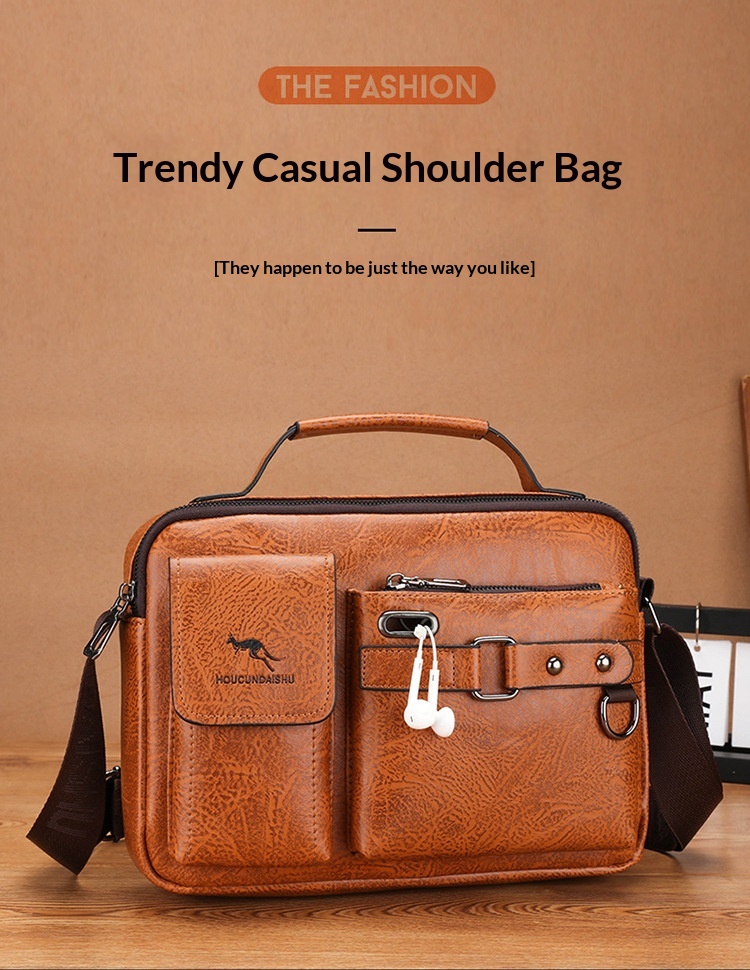 Men's Large Capacity PU Shoulder Bag Retro Business Style